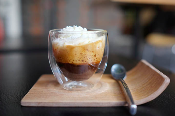 Nikmati kelezatan Minuman Espresso Con Panna, perpaduan sempurna antara espresso pekat dan krim kocok lembut, cocok untuk penikmat kopi yang mencari sensasi rasa istimewa.